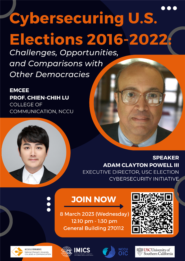 講題:Cybersecuring U.S. Elections 2016-2022: Challenges, Opportunities, and Comparisons with Other Democracies